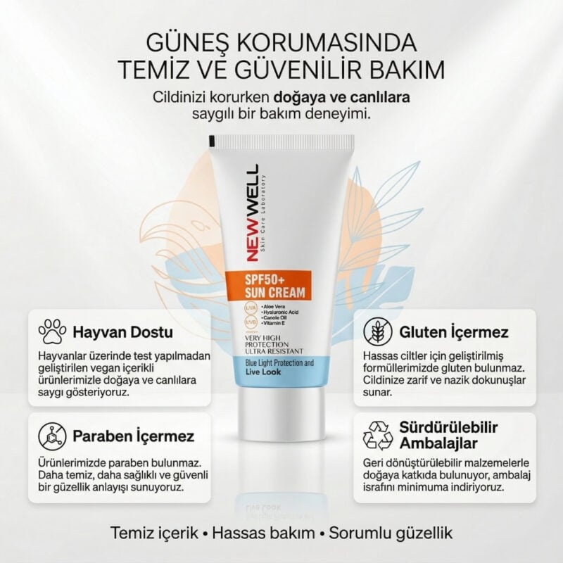 Koruma Faktörü: SPF 50+ (UVA ve UVB geniş spektrumlu koruma)